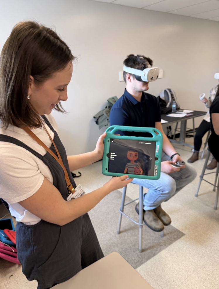 This year we went to our local Design Lab which we then went through what we were going to be doing the next day at a local school with grades 5’s and 6’s. We walked through how to proper size all of the VR sets for the students, how to set boundaries, and preset the game so when students put on the VR set they did not have to do any setting up.
