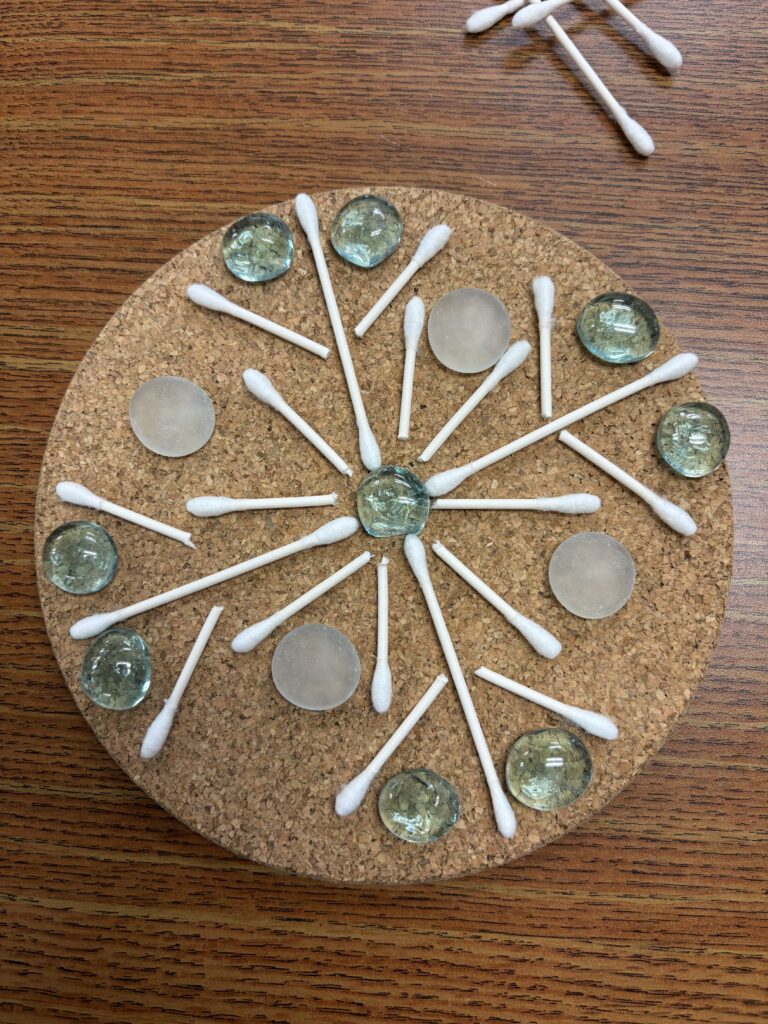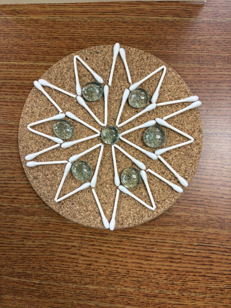 In this soft start activity, students will use the supplies to create a snowflake design. They can choose to follow the pictures provided by the teacher, or they can come up with their own design. During this activity, students are encouraged to use critical thinking, problem solving, creativity, and decision making. Students are allowed to work independently or in pairs. When working in pairs, the students must make sure that both participants are taking turns.
