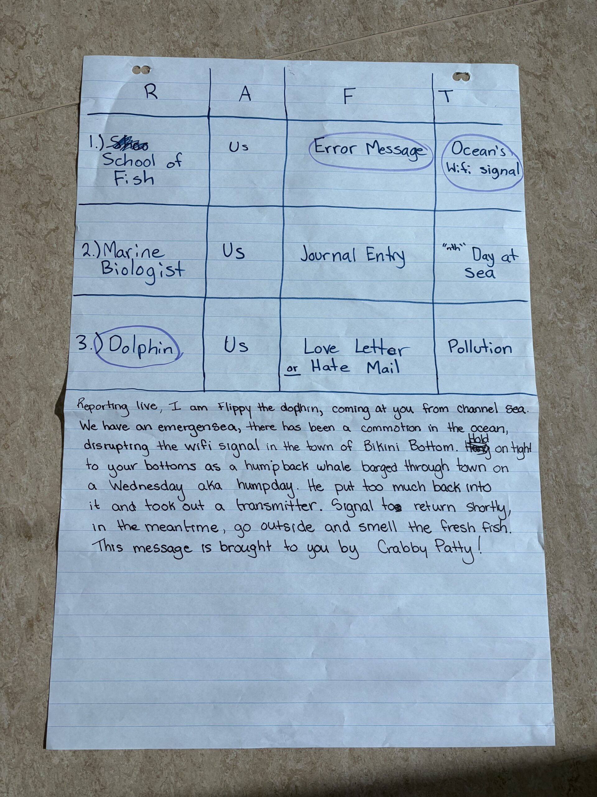 Thinking about teaching the RAFT literacy strategy has pushed me to reflect more on perspectives and intentional design within assignments or projects. Meaningful change requires someone to step into someone else’s mindset which allows you to take on the role you are writing from. If a student is writing about elephants, they must be the elephant, understanding and incorporating the elephants world from the elephants perspective.